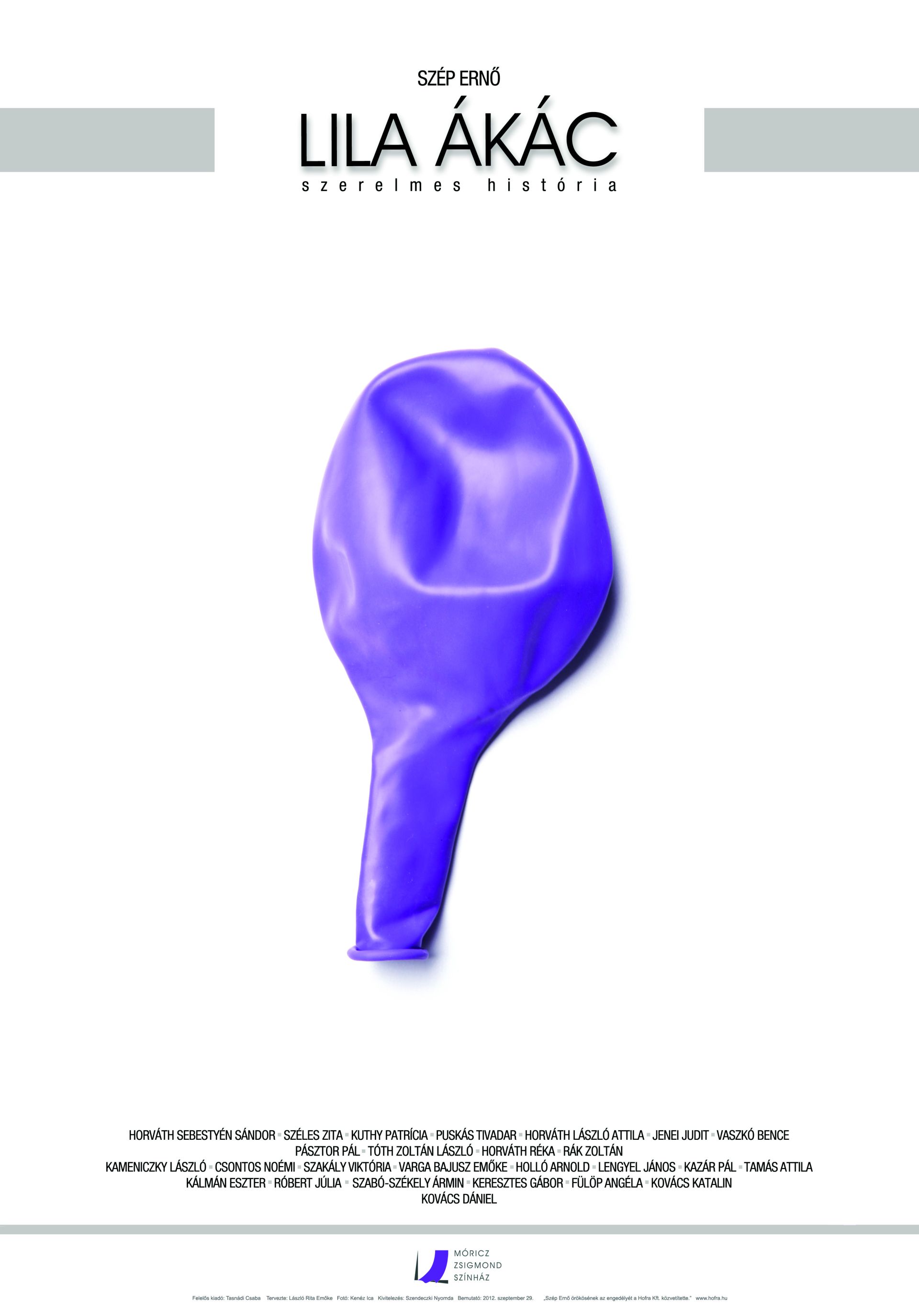Lufierdőben találkozik egymással a Lila ákác című szerelmes história két főszereplője, Csacsinszky Pali és Tóth Manci a nyíregyházi színház egyebekben csupasz és leplezetlen színpadán. Ritka, hogy a tér az első pillantásra meggyőző és erős értelmezést hordoz már önmagában, márpedig a Kálmán Eszter tervezte látvány ilyen. Egyszerre visz múltba és erőteljes a jelenben, amire a forgószínpad, illetve a kitűnő érzékkel komponált, a teret változtató szín- és fényjáték jól tud rájátszani. Ha még hozzávesszük, hogy a műsorfüzet címlapján egy leeresztett lila lufi képe látható, és a lufi az előadásban nem csupán díszlet, hanem kellék, akkor ezt a könnyen, de mégsem giccsesen metaforának is értelmezhető lufierdőt egy ritka erős és következetesen végigvezetett, koncepció jelleggel használt keretnek tudhatjuk be, ami ezen a szinten a magyarországi színházakban ha nem is a fehér holló ritkaságával, de mégsem gyakran fordul elő.