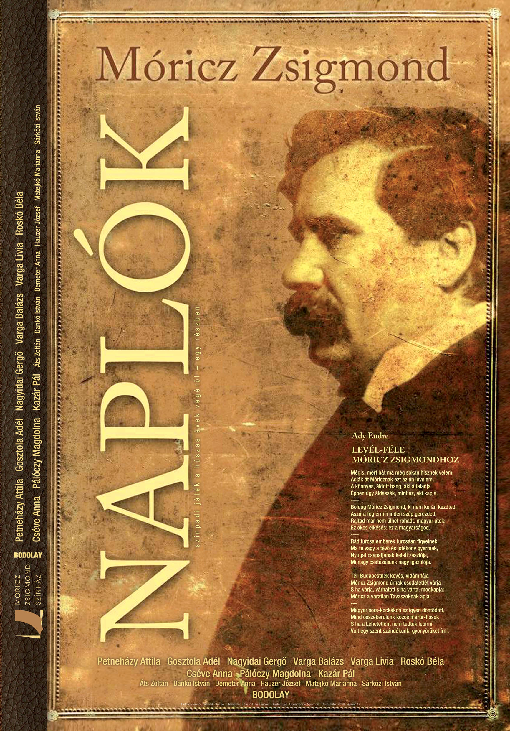 Amikor a nyíregyházi teátrum műsorára tűzte Bodolay Géza rendezésében a Naplók című előadást, nem az intimpistáskodás vezette. Sokkal inkább az, hogy szélesebb közönséggel ismertesse meg – tankönyvi sablonoktól mentesen – az embert, az alkotót, a férfit. Az író halálának hetvenedik évfordulója tiszteletére bemutatott darabban megelevenedik Móricz 1924 és 1929 közötti életszakasza, összes kuszaságával, alkotói és személyes válságával együtt.