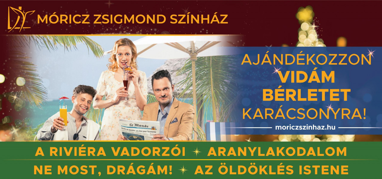 Lepje meg szeretteit karácsonykor a négy előadást tartalmazó VIDÁM színházbérlettel, és ajándékozzon közös színházi élményt. A VIDÁM bérlet megvásárlásával felhőtlen szórakozásban lehet része 2 nagyszínpadi: az Aranylakodalom, a Ne most, drágám!, 1 Krúdy Kamara: Az öldöklés istene és 1 Rózsakert Szabadtéri Színpadi produkción: A Riviéra vadorzói című előadáson.