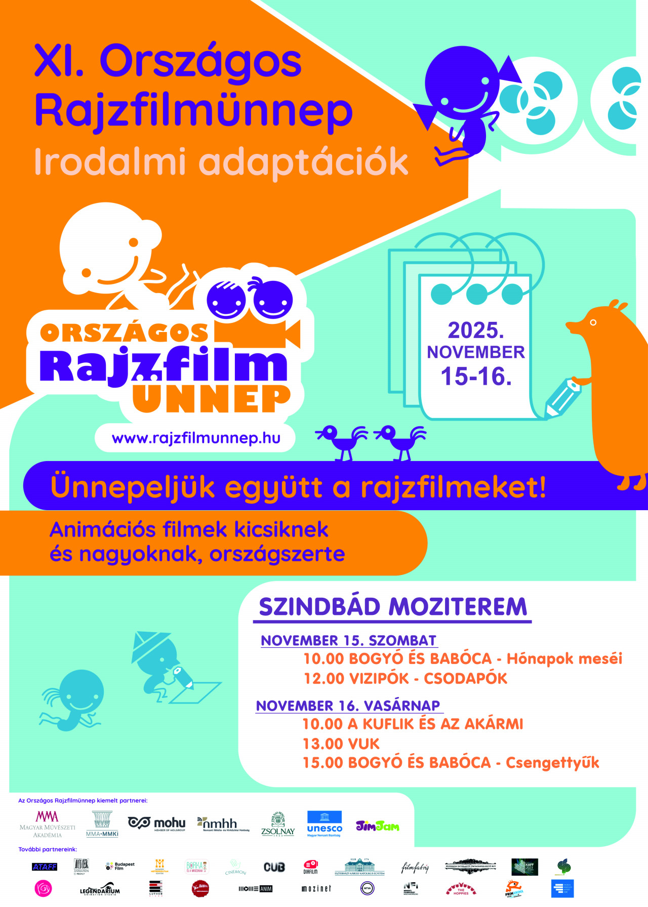 Móricz Zsigmond Színház ismét csatlakozik az Országos Rajzfilmünnephez, amelyet 2025. november 15., szombat és 16., vasárnap rendezünk meg Szindbád VIP Moziban. Az ingyenes fesztiválon mesefilmek vetítésével várjuk a látogatókat!